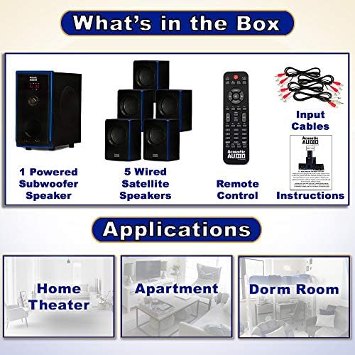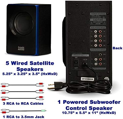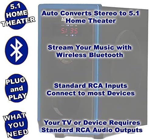 This Acoustic Audio System features a contemporary design and is a stylish addition to any home. This 800 watt, 6-piece system includes one (300W) powered subwoofer and five (100W) satellite speakers as well as cables and instructions needed to “Plug and Play” any audio source with a RCA audio output or use the front panel USB interface or SD/MMC card input. Use it for your home theater system, personal computer or laptop, gaming system, “i” devices, MP3 player, or other audio devices. The powered subwoofer features independent speaker controls as well as bass, treble and volume functions. It utilizes a digitally tuned wooden enclosure for increased bass response. The full-range satellite speakers feature magnetic shielding for use near televisions and computer monitors as well as included mounting hardware.