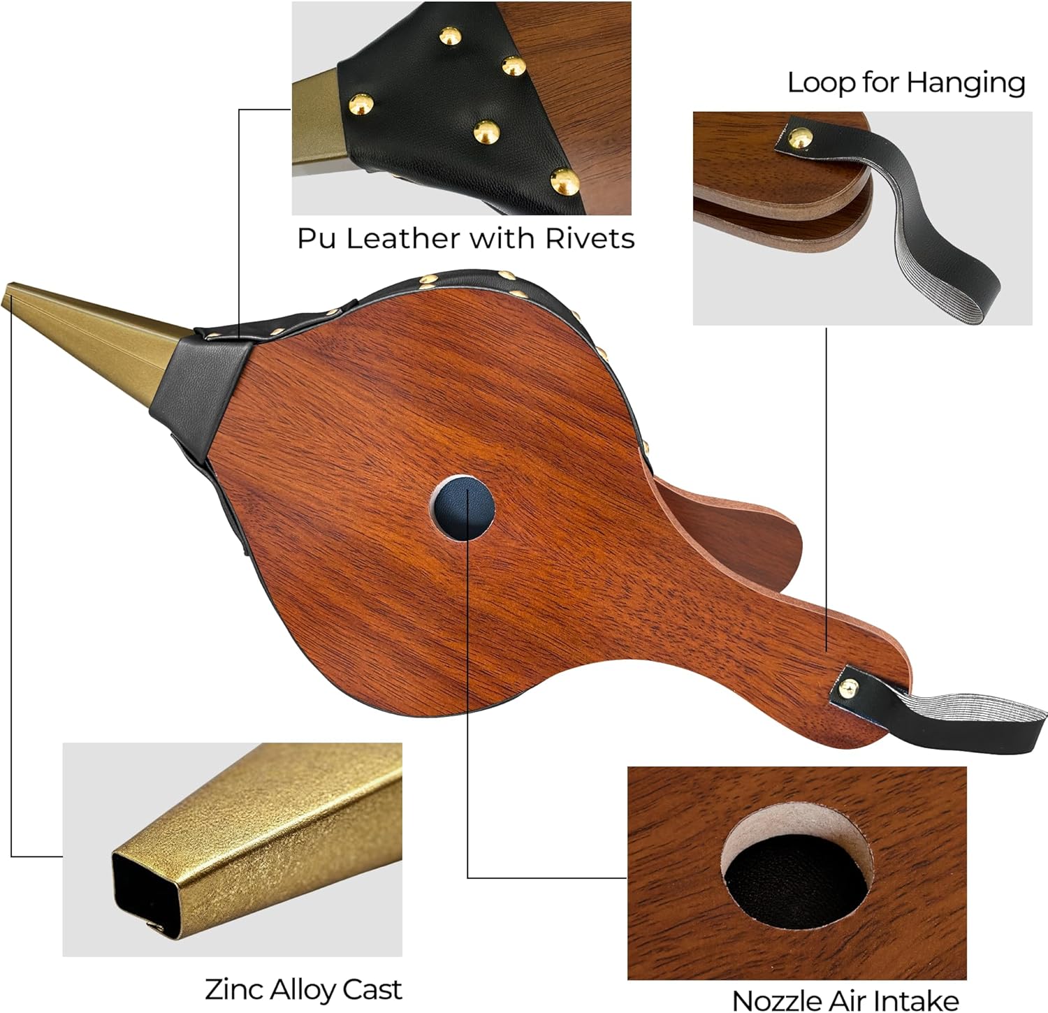 Amagabeli Fireplace Bellows 15.5″x 7″ Large Wood Air Blower Bellows for Fire Pit Cast Nozzle for Outdoor Camping BBQ Grill Chimney Hand Bellow Pump Barbeque Fire Tools Accessories Hanging Strap