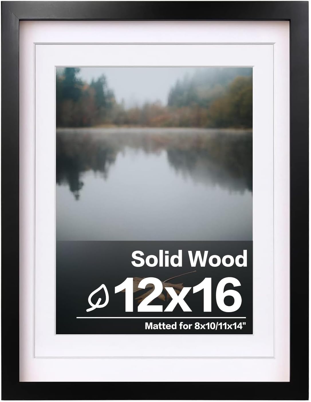 EGOFINE 12×16 Picture Frame Black – Solid Wood Frame With Plexiglass Front and 11×14 Mat for Table Top and Wall Mounting