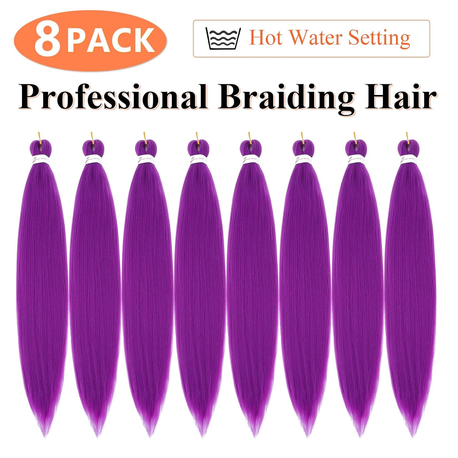 Pre Stretched Braiding Hair 24 Inch Braiding Hair Extension for Twist Or Box Braids 8 Packs Crochet Braids Hair Extensions Synthetic EZ Braid Hot Water Setting Soft Yaki Texture(24nch, Purple)