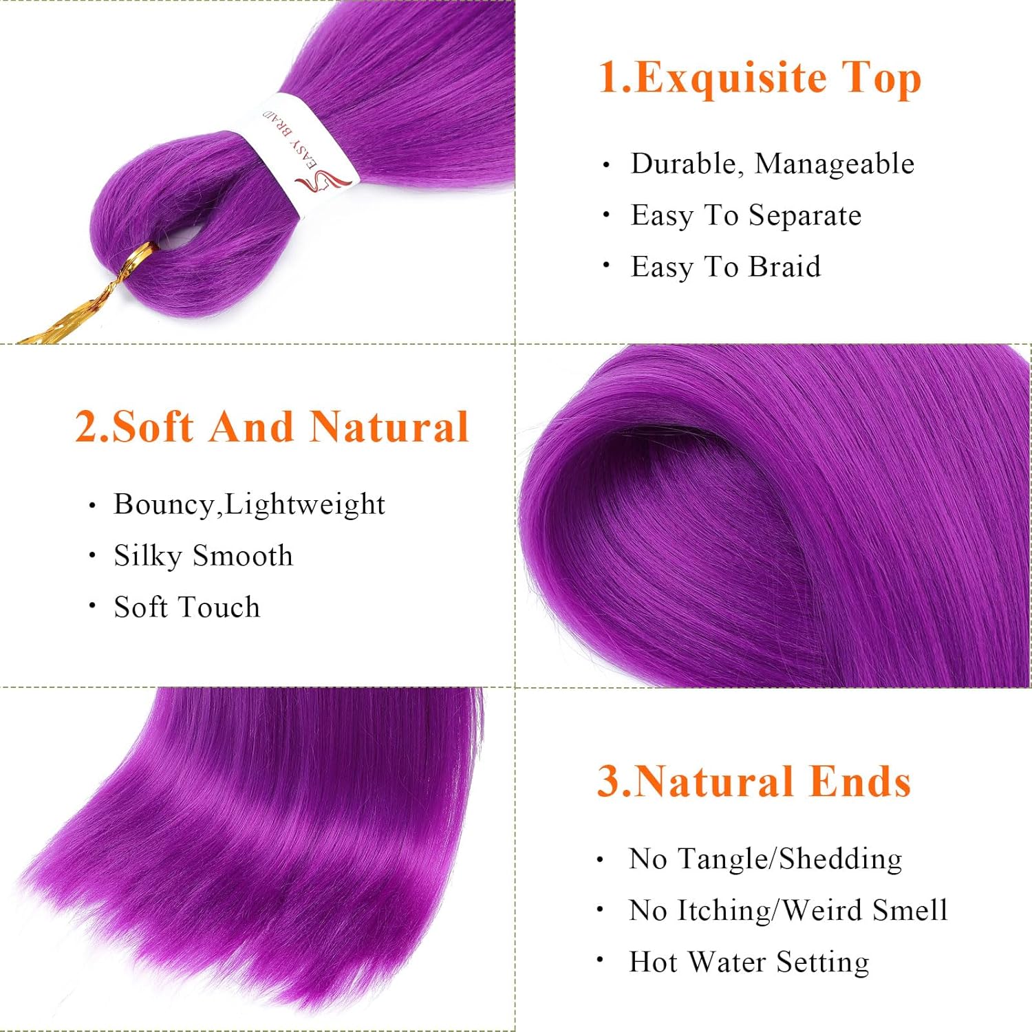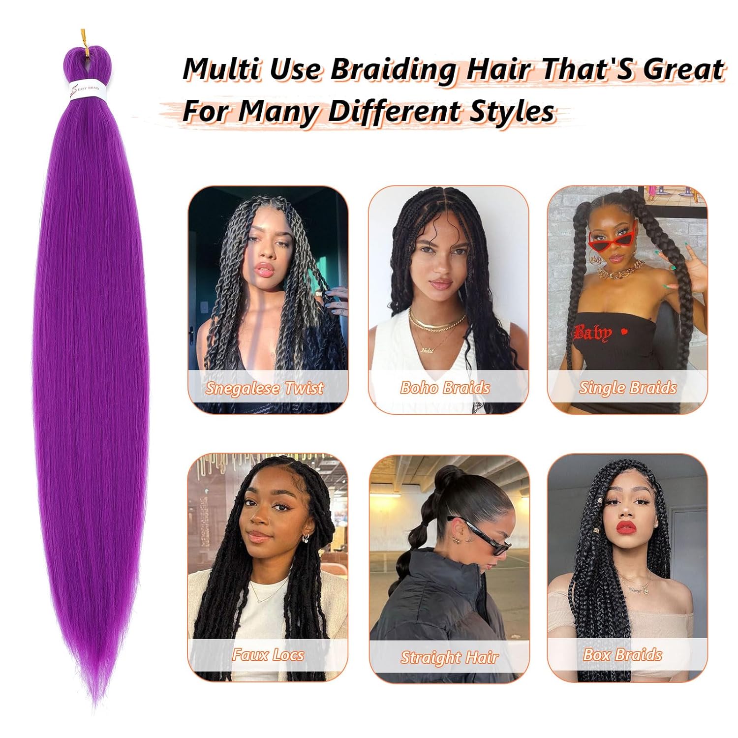 Be the first to review “Pre Stretched Braiding Hair 24 Inch Braiding Hair Extension for Twist Or Box Braids 8 Packs Crochet Braids Hair Extensions Synthetic EZ Braid Hot Water Setting Soft Yaki Texture(24nch, Purple)” Cancel reply