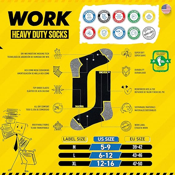 SOXCO Work 10 paia di calzini da lavoro da uomo, Nero , XL