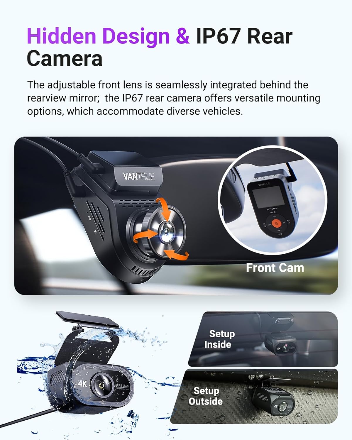 Vantrue S1 Pro Max 4K+4K Dash Cam Front and Rear, Dual Dash Camera with ADAS/BSD, Starvis2 HDR PlatePix™ Night Vision, 5GHz WiFi, GPS, Optional LTE, 24/7 Parking Mode, Voice Control, Support 1TB Max