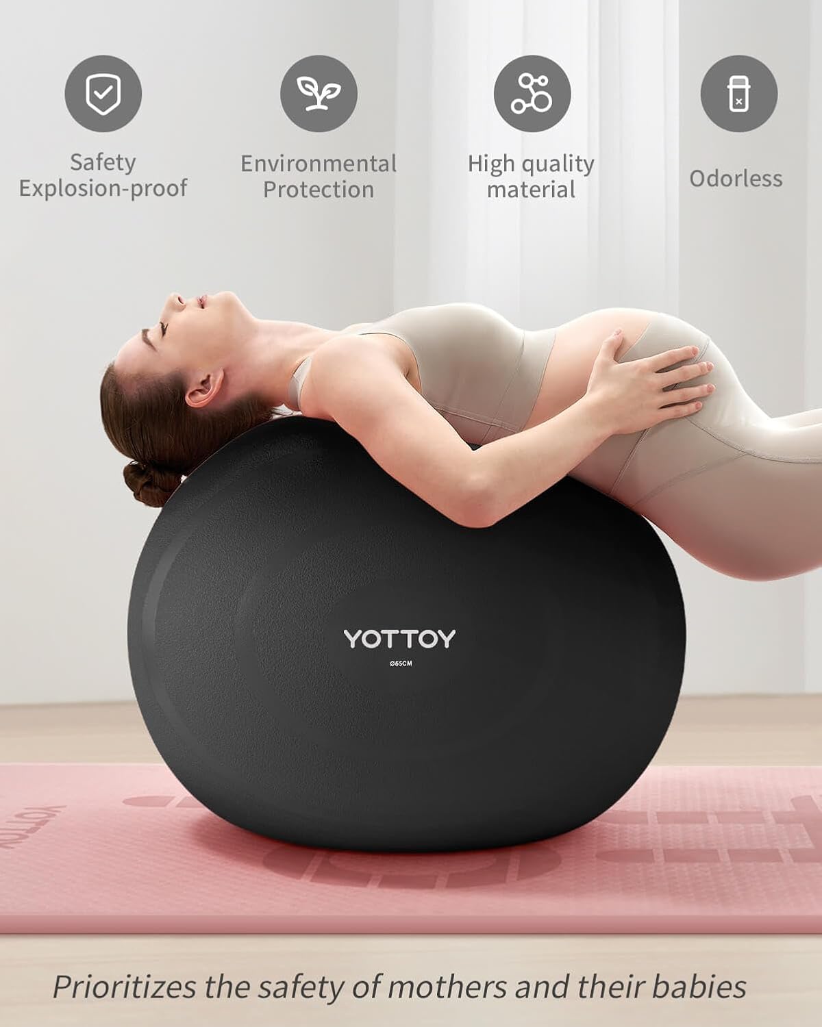 YOTTOY Anti-Burst Exercise Ball for Working Out, Yoga & Pregnancy, Extra Thick Workout Ball for Physical Therapy & Fitness (Black, 34IN/78~85cm)